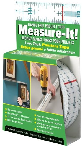 Incom RE6448 1" X 48' Measure-It Hands Free Tape Roll. Self wound - no release liner to remove. Repositionable adhesive - removable on most surfaces. Works right or left handed. 16" center markings - indicates positioning of studs. Write on it with pencil, ball point pen or marking pens. Works on curved or irregular surfaces - even measures around corners. Centerline for fast and easy drilling. Able to count footage at a distance. Will remove cleanly for up to 30 days. Not affected by sunlight. Uses a premium adhesive. Helps painters create even sharper paint lines.