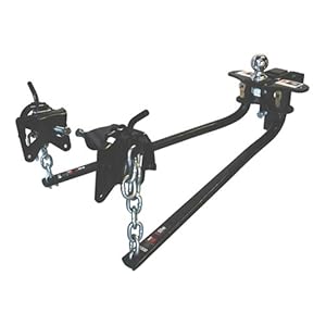 Camco's RV 800 lb Eaz Lift Bent Bar Weight Distributing Hitch with Adjustable Ball Mount and Shank over five decades ago, became the first patented weight distributing system in North America. It is designed with fewer parts, machine tapered round spring steel bars, and is forged longer for a smoother ride with interchangeable bars that have positive latching action for operation. This hitch comes with all necessary parts including hook-up brackets, spring bars, chains, ball mount, shank and hitch pin, clip and bolt package for adjustable ...